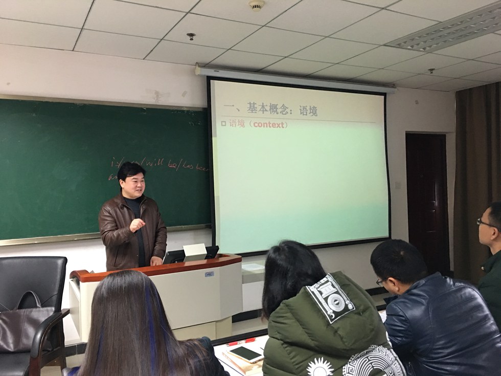 语境,即言语环境,包括语言因素及非语言因素。语言,即在特定的语境特殊的共同符号通过向他人传达信息。同样的一个字或者一句话,在不同的语境中会传达不同的信息,对于我们的母语,似乎潜意识里就有语境意识,而作为第二语言的英语,很容易忽略语境。1月10日上午褚修伟教授就英语教学中的语境理论给老师们呈现了精彩的一课。让老师们受益匪浅。