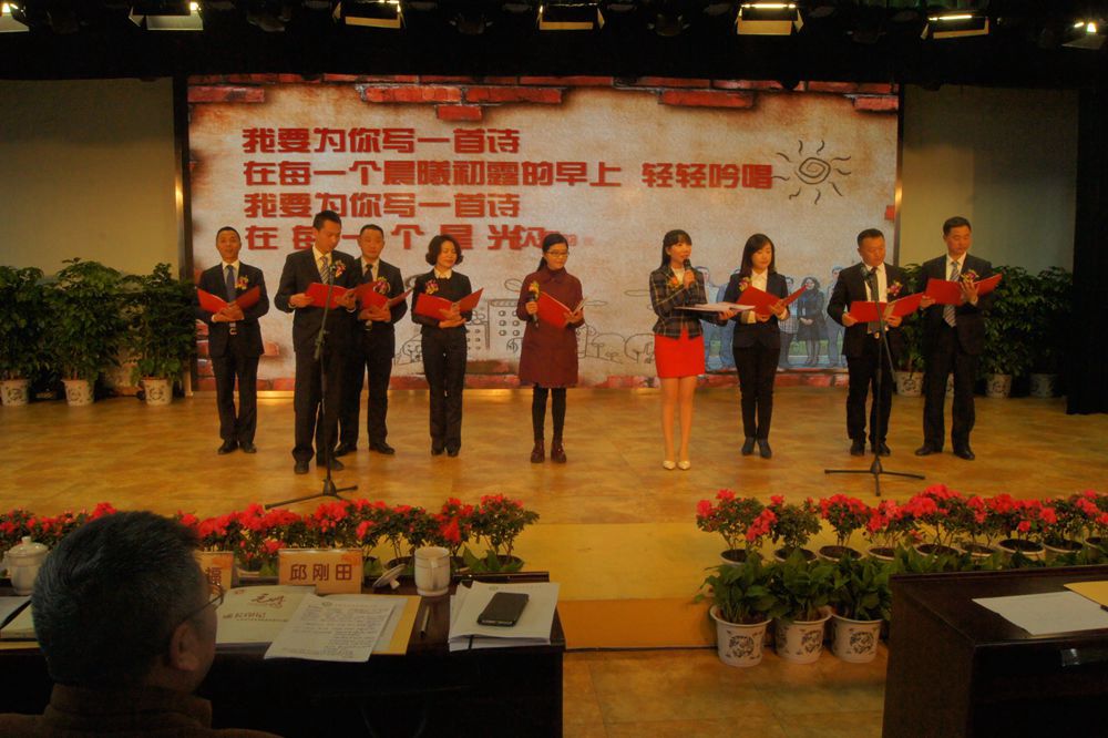 2点,毛凤鸣工作室首先播放了视频《把生命开成一树一树的花》,从“常伴阅读,丰盈内心;伏案耕作,落笔筹谋;点位聚焦,落地指导;夯实调研,精细指导;良师支招,受益良多;外出访学,行有范式”等六方面形象生动的展示了工作室自2014年3月成立以来的研修过程和特色成果。接着,毛凤鸣工作室第一期学员双华小学校长夏雪梅、双华小学副校长杨东宇、胜利小学校长祝波、彭镇小学副校长钟霞、黄水小学副校长王明强、实验小学副校长傅兵等6人分别进行了精彩的结业汇报。然后,毛凤鸣工作室全体学员在导师毛凤鸣的带领下为大家献上了声情并茂、感人肺腑的伴乐诗朗诵《为你写诗》。
