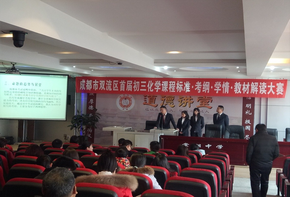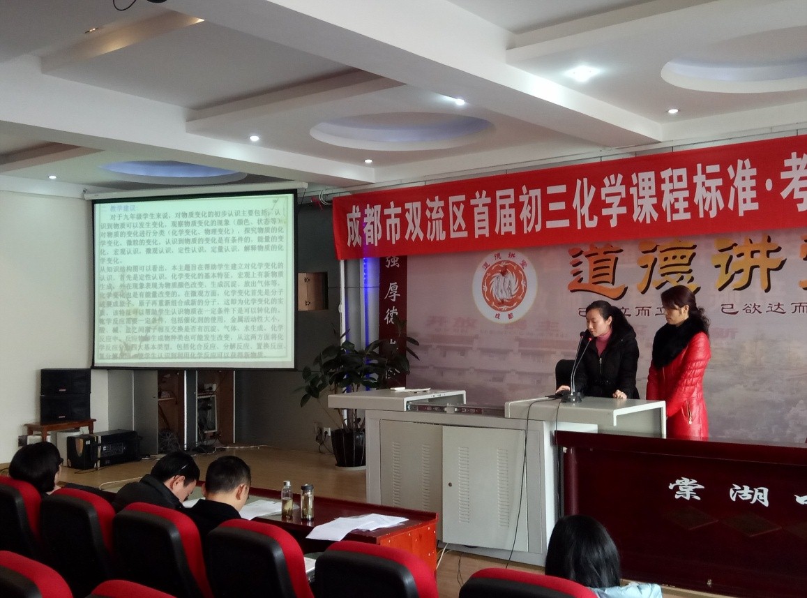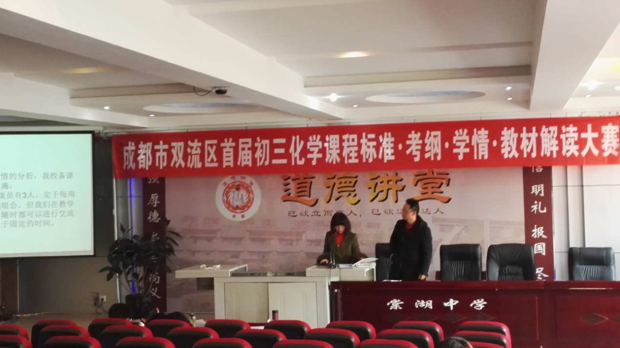 成都市双流区首届初三化学课程·标准·考纲·学情·教材解读大赛于2017年3月7日、8日在棠湖中学举行。经过前期各校提交的文本解读材料的评选,共有9所学校参加此次解读大赛现场比赛。