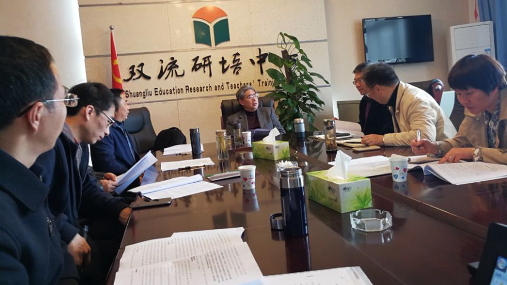 指导会中,双流区教育研究与教师培训中心邱刚田主任代表课题组向尹会长从双流区教育的现状、课题组对本课题前期开展的文献综述、研究方案、以及本课题组目前的困感作了汇报。研究小组成员们就研究的设计问题与专家进行了互动。