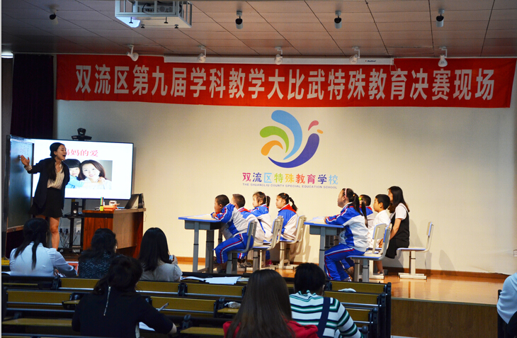 5月4日,双流区第九届学科教学大比武特殊教育决赛活动在双流特教校现场举行。此次大赛经过校级初赛、区级资料评审、场地安排等前期紧锣密鼓的筹备,于4日早上7点20分开始在特教校 棠湖小学两个场地先后进行。区研培中心特殊教育教研员彭文平主持了此次大赛,成都市教育科学院、锦江区教师进修学校特殊教育教研员担任大赛评委,全区各普通小学、特教校40余名教师参与现场观摩。