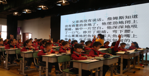 接下来的教学展示阶段由双流区研培中心特教教研员彭文平老师主持,分别从随班就读教学管理、普校教材特教解读、课堂教学全方位展示双流随班就读近年来的教学成果。彭镇小学李俊秀主任从学校管理层面介绍随班就读教学管理经验,黄水小学以团队汇报的形式,展示普校教材与特生学情的无缝对接,生动呈现了一名伴随情绪行为障碍的特殊学生的学习进步,给与会教师留下深刻的印象。最后实验小学提供现场课开展教学观摩。区特殊教育中心组廖永琴老师执教三年级语文《钓鱼的启示》,课堂上,廖老师以自制的特殊学生学习单为线索,选择了三个教学点对随班就读学生小轩实施无痕关注。一是在开课听写词语时,廖老师邀请小轩上台听写词语。二在品读重点段时,廖老师根据特殊学生形象思维占优势的特点,采取特殊学生多感官理解词义的教学策略,引导其和小伙伴加上动作读词句。三在课堂写话环节,其他同学想象描写父亲动作,廖老师降低难度,请随读生看图写词写句,并在全班展示学习成果。课后,实验小学资源室王昌利老师和特教校宋文红老师,分别对小轩语文学科学习和资源室个别辅导情况进行交流,课堂教学中差异化处理教材、分层实施教学,与资源室中个别辅导深度融合,生动形象的诠释了特殊学生在普通学校优质的学习发展。