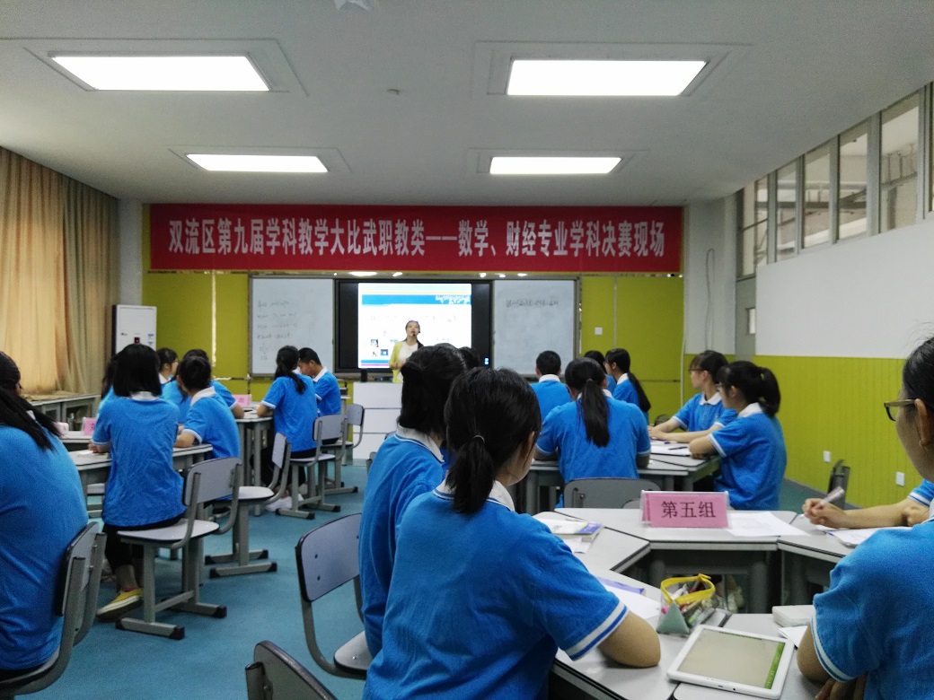 2017年5月16日,双流区第九届学科大比武职教类决赛进入第二天,来自三所公办中职学校的选手参加了数学、财经两个学科(专业)的角逐。本次决赛,作为职教类公共基础课之一的数学学科,选取高教社中职数学教材的拓展模块,采用现场抽取题签,现场独立备课,现场抽取班级,现场上课的形式,考察教师的基本功和综合能力。从决赛选手的表现来看,各校都推选出了优秀选手参加决赛。参赛选手数学素养优秀,课堂调控能力强,真正体现了职教类数学学科教学 “三个服务”的特点(为学生的基本素质提高服务、为学生的专业学习服务、为学生的终身学习服务),具有很强的示范性。财经专业选手根据专业特点,采用任务驱动教学法,熟练运用微课、智慧课堂等信息化教学手段,将原本枯燥的财经知识以任务包的形式发放给学生,让学生们学起来兴趣盎然。本次活动既是一次教学比武,也是一次中职课堂教学改革成果的展示,将有力地促进各校教师素质的提升,促进各校的内涵发展。