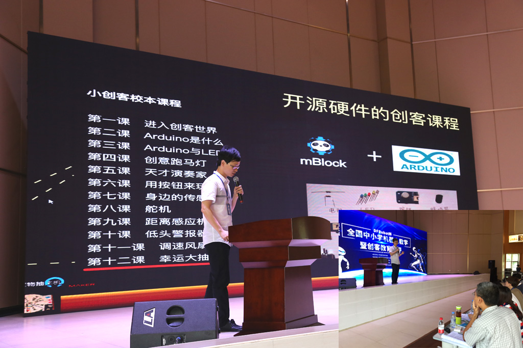 除两项赛事外,由陈明溥教授主持的专题论坛,邀请了国内知名创客教育专家华南师范大学焦建利教授作“中小学创客教育的五种途径”、浙江省温州中学谢作如老师作“创客教育—综合实践活动的操作性学习”、北京景山学校吴俊杰老师作“机器人伦理与德育实践”、深圳城市学院课程与评价改革研究院宋承昊院长作“深圳中小学创客课程开发实践经验分享”。