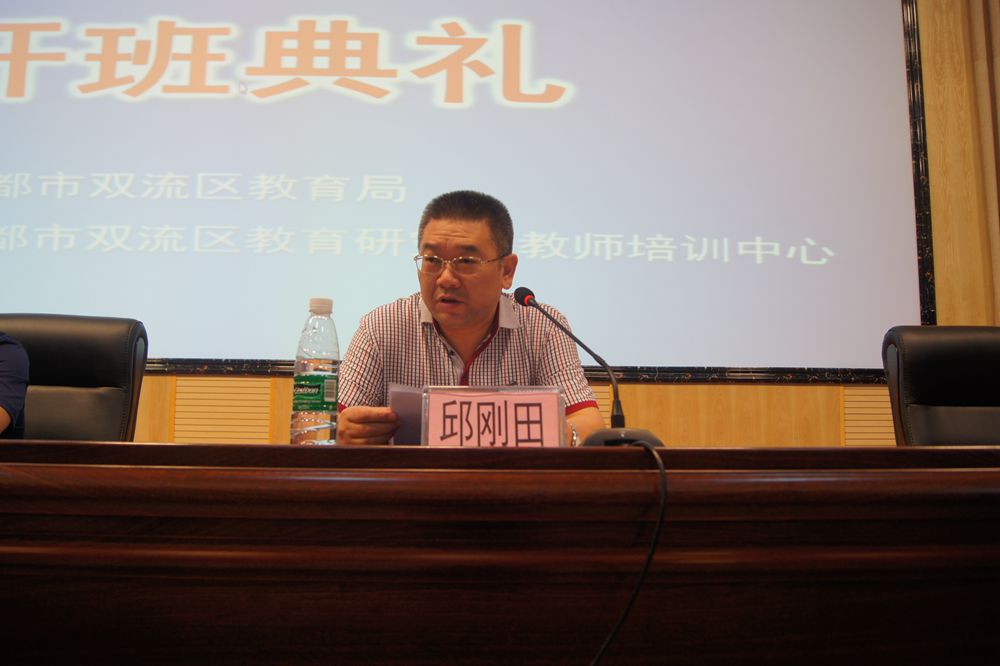 25日上午9:00,在区教育人才交流中心江世海主任热情洋溢、幽默风趣的欢迎辞中拉开了开班典礼的序幕。随后研培中心教师发展室主任赵剑云解读了《2017年双流区新教师培训方案》,对本届培训班的培训内容、培训方式、培训管理、组织考核等做了详细的讲解。接着,就职于西航港小学的陈凤老师作为新教师代表作了情真意切的发言。然后,区教育研究与教师培训中心主任邱刚田作了讲话。他希望新教师要强化思想意识,充分认识教师职业的特殊性;要注重师德修养,努力提高教师自身的素质;要制定职业规划,自觉加强教师学习的主动性。指出新教师要尽快转变角色,适应岗位需求,用最短的时间站稳讲台,尽快地成为一名合格的人民教师,为学校教育、双流教育事业的发展做出应有的贡献。