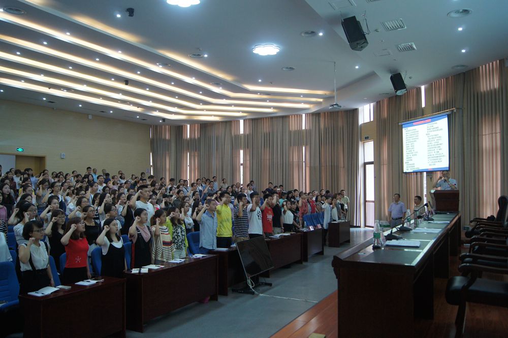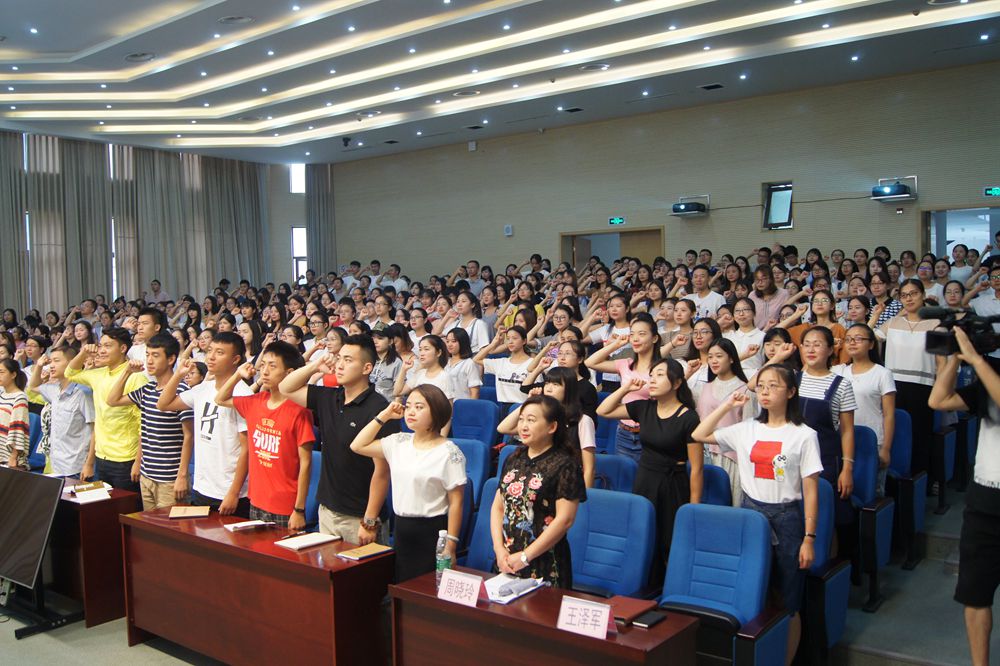 开班典礼上,在成都市特级教师、双流区名教师工作室导师、双流中学研培处主任王泽军的带领下,全体新教师庄严的进行了入职宣誓:“教师是我光荣的选择——我的肩上扛着民族的希望,我的心中装着祖国的未来,我的手中捧着孩子的明天”朴实无华、豪迈激昂的誓言鼓舞了在座的每一位新教师,进而认识到了职业的神圣与光荣,体会到了身上的责任与担当,同时也表达了教书育人,终身学习,服务社会的决心。
