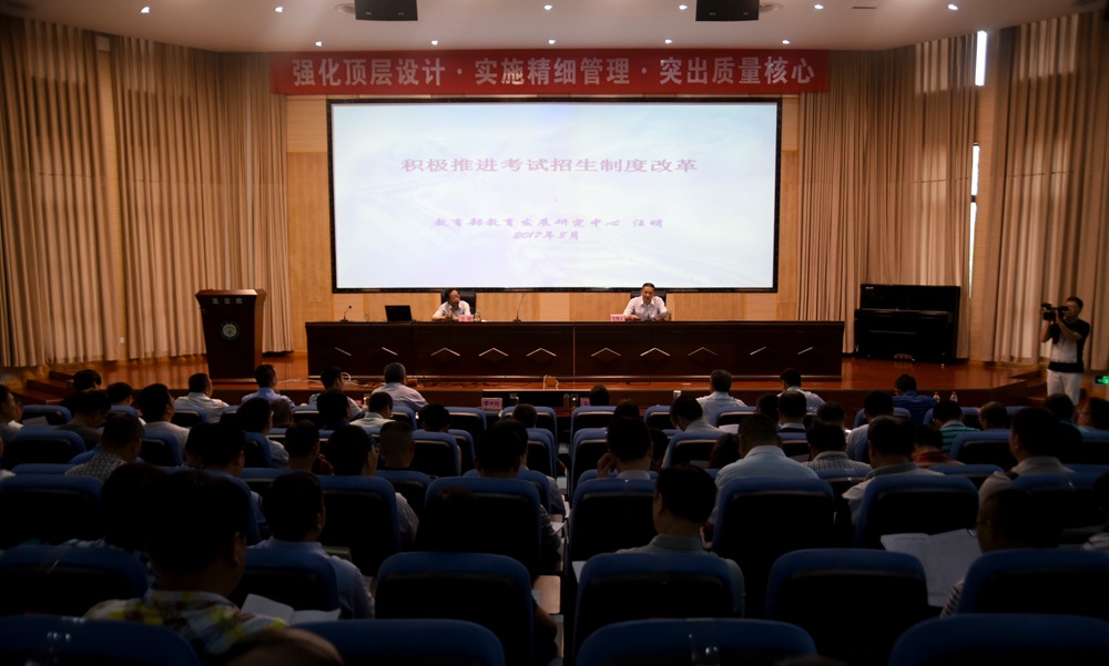 上午,教育部教育发展研究中心基础教育研究室主任、研究员汪明作了《积极推进考试招生制度改革》专题报告。汪主任从义务教育招生改革入手,介绍了国家关于中考、高考的相关文件,分析了各地中专、高考改革的经验,指出了中考、高考改革对教育教学工作的影响。