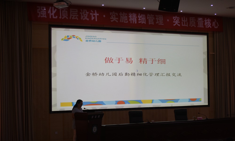 在后勤管理精细化的经验交流中,金桥幼儿园园长李隽作了《做于易,精于细》的专题发言。