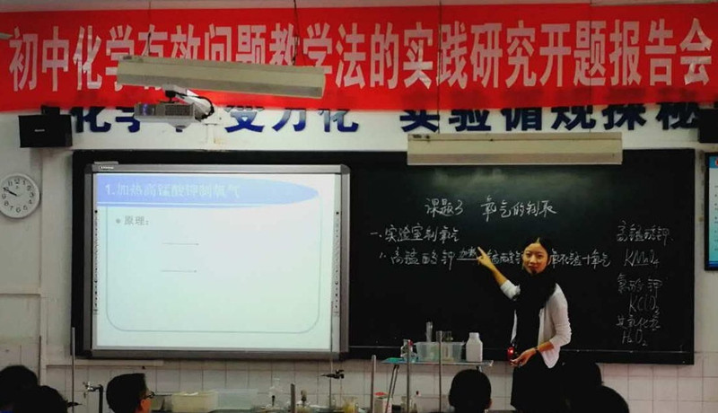 东升一中的张梅老师献课《制取氧气》第一课时,整个课堂以问题贯穿始终,充分体现了有效问题教学的理念,获得了肯定和一致好评。也为本次课题开题报告拉开了序幕。