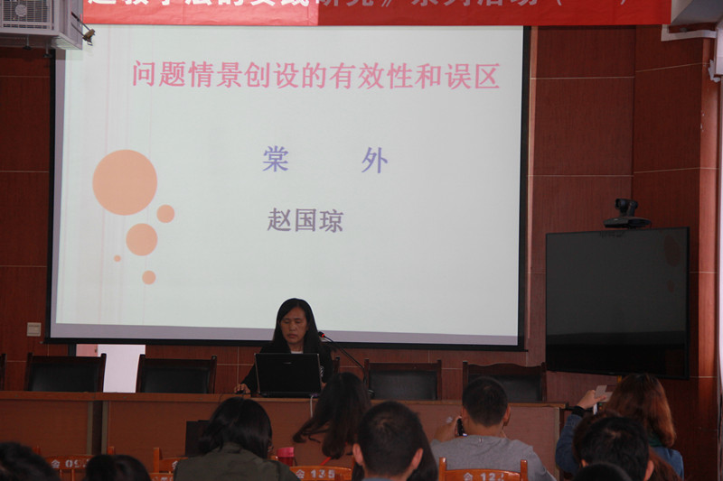 成都棠湖外国语学校的赵国琼老师做了题为《问题情景创设的有效性和误区》讲座,赵老师结合自己多年的教学实践和观课经验,对课堂教学的问题情境创设做了细致的对比分析,她给出了多组成功案例和失败案例进行解读,得到了与会教师的一致好评,大家都认为赵老师的讲座接地气,有实效,有对比,贴近实际教学,引人深思。