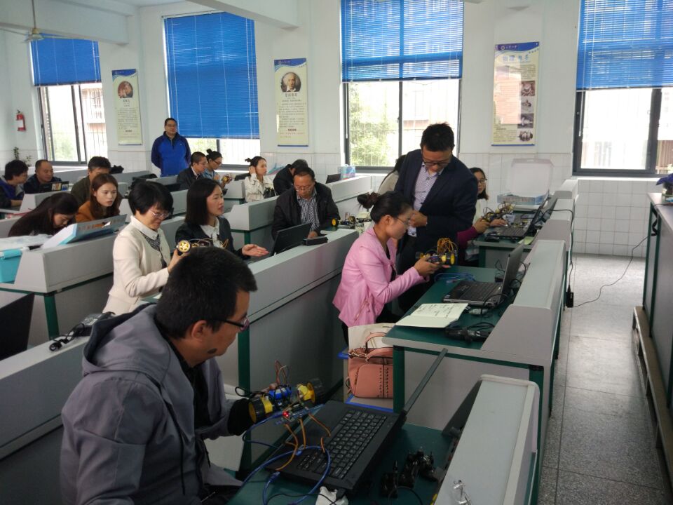 接着,杨维国老师结合自己多年从事机器人教育所积累的经验,详细的介绍了机器人教育的意义、机器人教学的方法。重点讲解了常见传感器编程与调试的方法与技巧。所有参训教师边听课边实践,极大的提高了机器人教育教学能力。