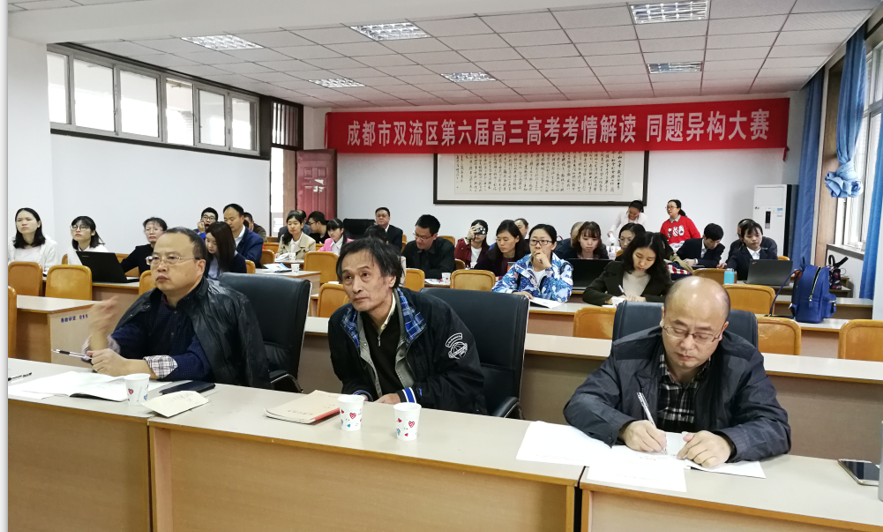 2017年10月17日,双流区第六届高中生物学科高三高考考情解读同题异构大赛在双流区研培中心举行。参加比赛的是全区五所高中学校的高三生物备课组老师中现场抽签决定,观摩的老师除高三教师以外,还有部分高二、高一生物老师和其他区市县的生物老师。担任本次评委和点评专家的是省教研员何兴明老师、市教研员乐天老师、郑达钊老师。