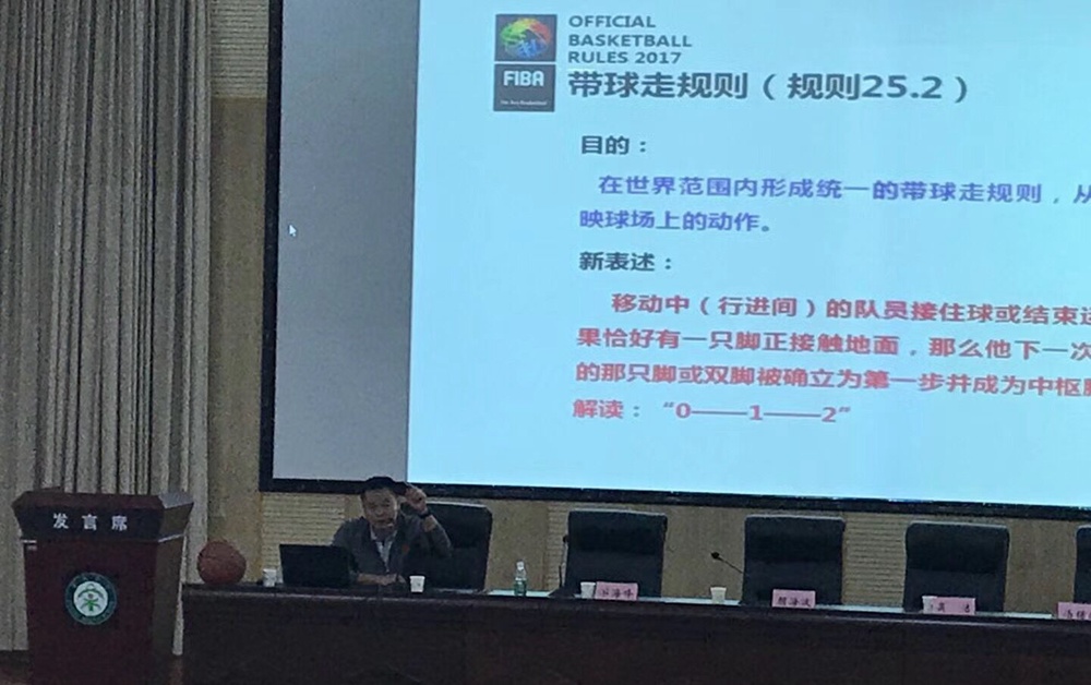 会议第一天,首先是由棠湖中学副校长吴校长致辞,吴校长对棠湖中学取得的成绩、走班课程、“六会一场”和一特色,一亮点,一品牌做了简要的介绍,并对到会的老师们表示感谢;接着是艺体科科长汤锡波对本次会议的开展目的和开展情况做介绍,汤科长明确指出,双流区体育教师通过近几年的培训,体育教师们的风貌明显提升,除了风貌的提升外,我们体育教师还该在自己的专业能力上有更进一步的提升,在自己的岗位上要具备不可替代的能力。之后,是四川师范大学体育学院副院长颜海波对新裁判法的制裁规则进行讲解和示范,分别从2017年篮球规则变化具体内容、规则中重难点问题的理解与梳理、教练员如何利用规则进行比赛和2016年FIBA3x3篮球规则的四个方面进行讲解和示范。下午是国际级篮球裁判闫军教授对篮球裁判和规则的实际操作做详实的讲解,闫教授分别从实操训练、回场、手势、掩护的种类、带步走、工作方法、基层注意事项、赛事变化和现场问题解答多个方面进行讲解、实操和演练。