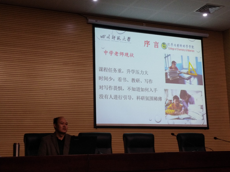 为提高全区化学教师的科研素养,促进全区化学教师的专业发展,11月7日上午,双流区研培中心化学组邀请到了四川师范大学化学与材料科学学院化学教育教研室主任、科学教育系主任、四川省化学化工学会化学教育委员会秘书、四川省小学科学教育委员会理事樊敏副教授,在棠湖中学新校区为全区初高中化学老师做了主题为《中学化学教师如何做教学研究》的讲座。