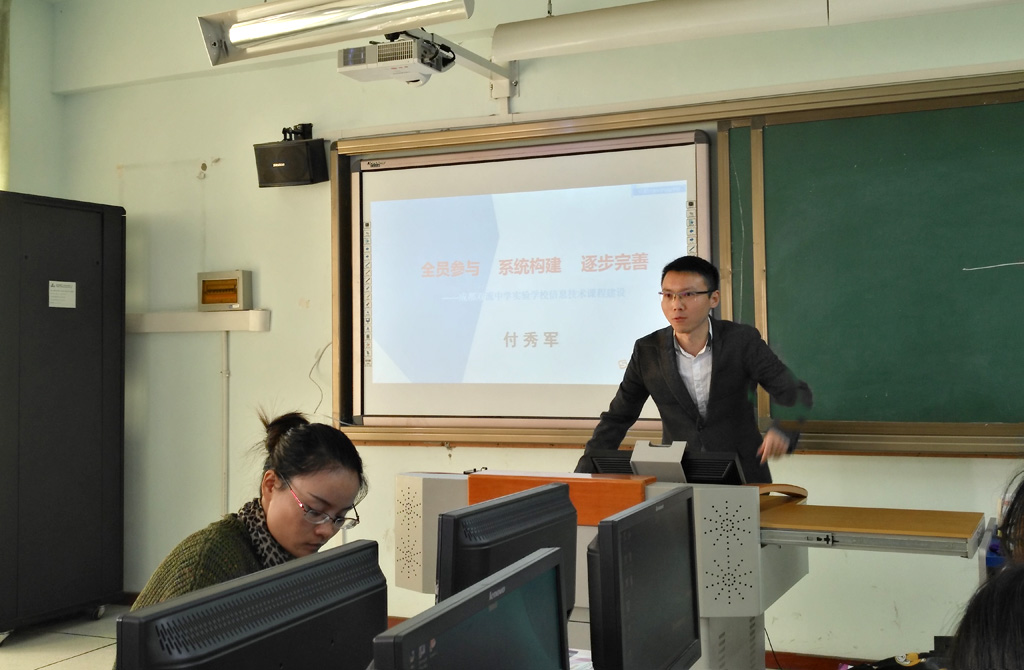 活动中,双中实验学校的付秀军老师首先为大家带来一堂生动有趣的Scratch课例《我是创客-初识Scratch》;课堂以“玩游戏”激趣引入,向同学们传达了“玩游戏不如设计游戏”的理念,将学生的爱好转化成学习的动力,激发学生主动创造和创新的意识;课中开展小组合作,通过Scratch环境的游戏任务设计实现新知学习,在进一步“改进游戏”与“难度挑战”中迁移新知实现难度拓展,课堂最后还以鼓励创新创意成就一名“创客”作为结束;整堂课学生参与度高、互动性好,达到预期教学目标、教学效果好,赢得了在场听课教师的一致认可。课后,付秀军老师还以“全员参与、系统构建、逐步完善”为题,从“学校课程建设”、“信息技术学科能做什么?”、“在Scratch教学中我们做了什么?”、“在Scratch教学中遇到的问题和下一步的思考?”、“课程建设方面我们的目标”等五个方面与老师们分享了双中实验学校近年来在信息技术课程建设中的探索与实践。