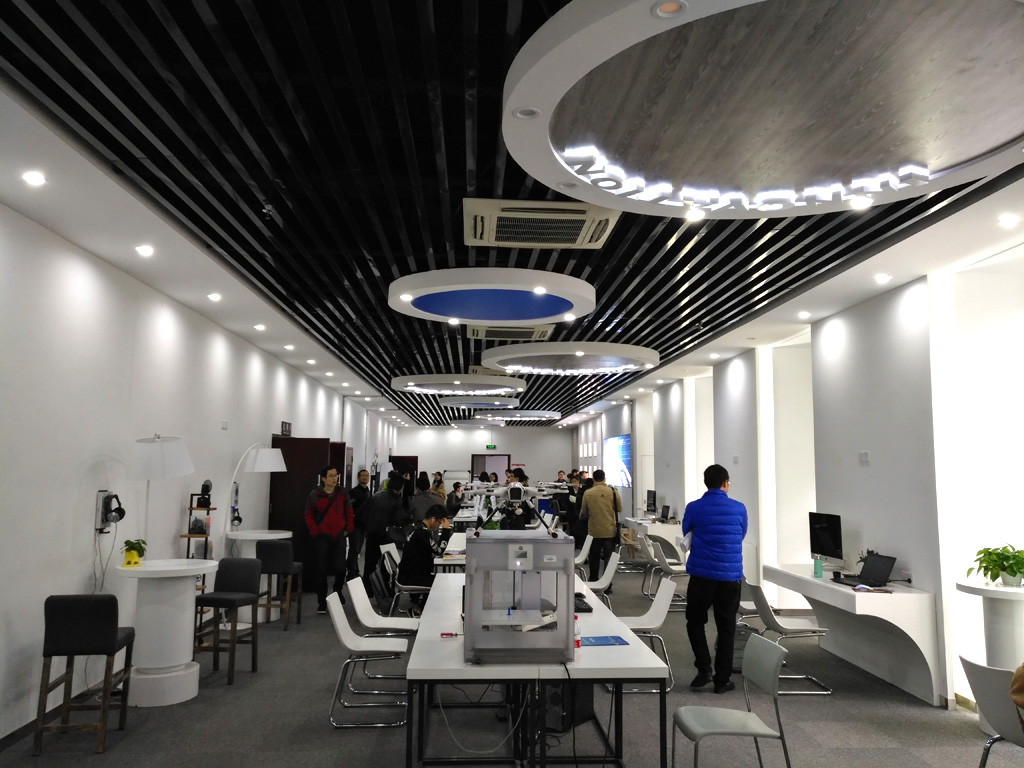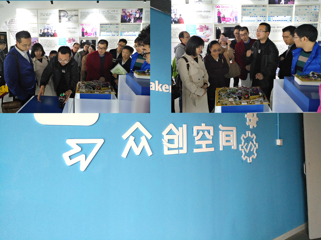 中午时分,在学校食堂简单用过午餐,老师们便骑着“小黄车”一路直达科技博物馆;珍贵的藏品中,从电子元件到通讯装备、从存储设备到计算机发展、从通讯发展到航天运用,可谓“馆藏小世界、科技新天地”,令人感叹发展的同时又寄望未来无限想象。走出博物馆,老师们又马不停蹄地赶往“学生创新中心-众创空间”,早已等候多时的“众创空间”负责人高阳主任领着大家走进拥有八大园区之一的1号展览区,通过视频展示、PPT讲解、动画模拟、实物解说等方式,高主任为大家展示了一个“以培养学生创新能力”为核心的众创空间建设与未来发展构想;在学生作品展区,看到“无人机”、“电子书阅览系统”、“平衡机器人”、“无人驾驶智能小车”、“智能开元硬件”及很多已经产品市场化的一个个“学生作品”,大家感叹不已。通过现场交流,老师们就“高等教育与中小学科技创新教育的衔接”、“中小学创新人才合作培养”、“中小学创客空间建设与课程开展”等话题与“众创空间”团队进行了深度的沟通与交流。