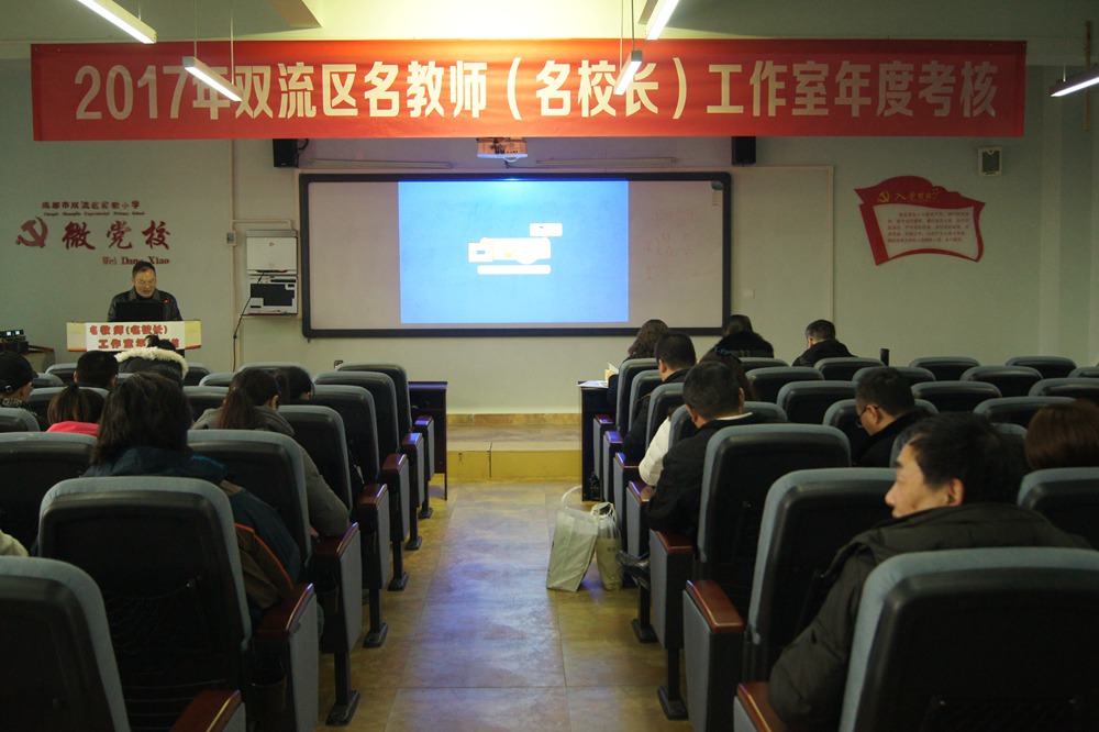 近日,2017年双流区名教师(名校长)工作室年度考核在双流区实验小学顺利结束。成都市教科院副院长谭文丽、成都市教科院教师发展所副所长黎炳晨和张学兰、双流区研培中心主任邱刚田及区研培中心名师工作室管理办考核小组一行对我区2个名校长工作室、18个名教师工作室、4个名班主任工作室和3个学科研培员工作室进行了考核。本次考核活动由双流区研培中心教师发展室主任赵剑云主持。本次考核分两个环节进行。