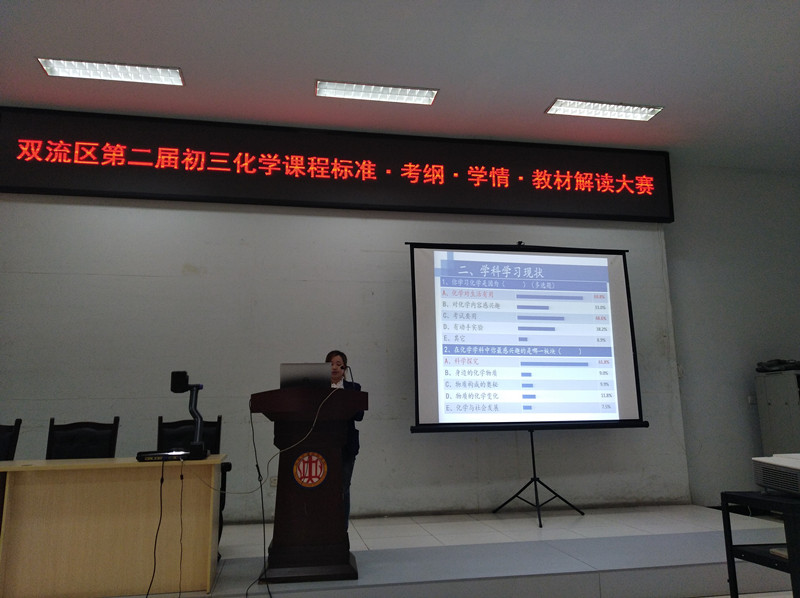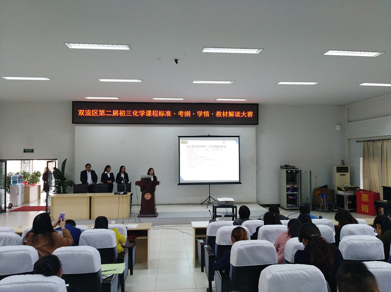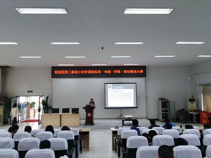 3月20日,双流区第二届初三化学课程标准·考纲·学情·教材解读大赛决赛在双流中学实验学校举行。经历了大赛前期的初赛筛选后,此次入围决赛的学校有棠中实验校、东升一中、棠外、双中实验校、黄龙溪学校、彭镇初中和西航港二中共7所学校。