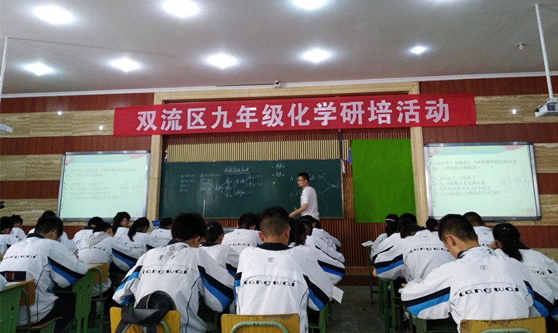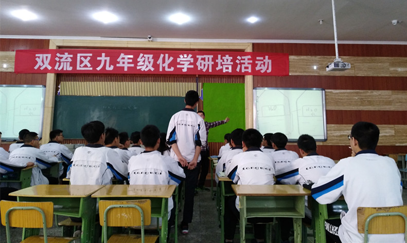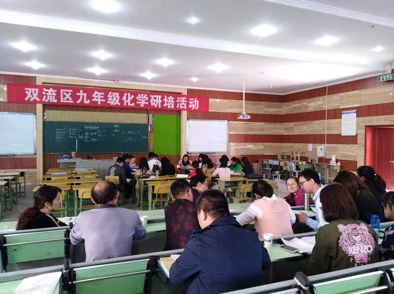 4月17日上午,双流区九年级化学研培活动暨学科带头人优质课展示在棠外举行。