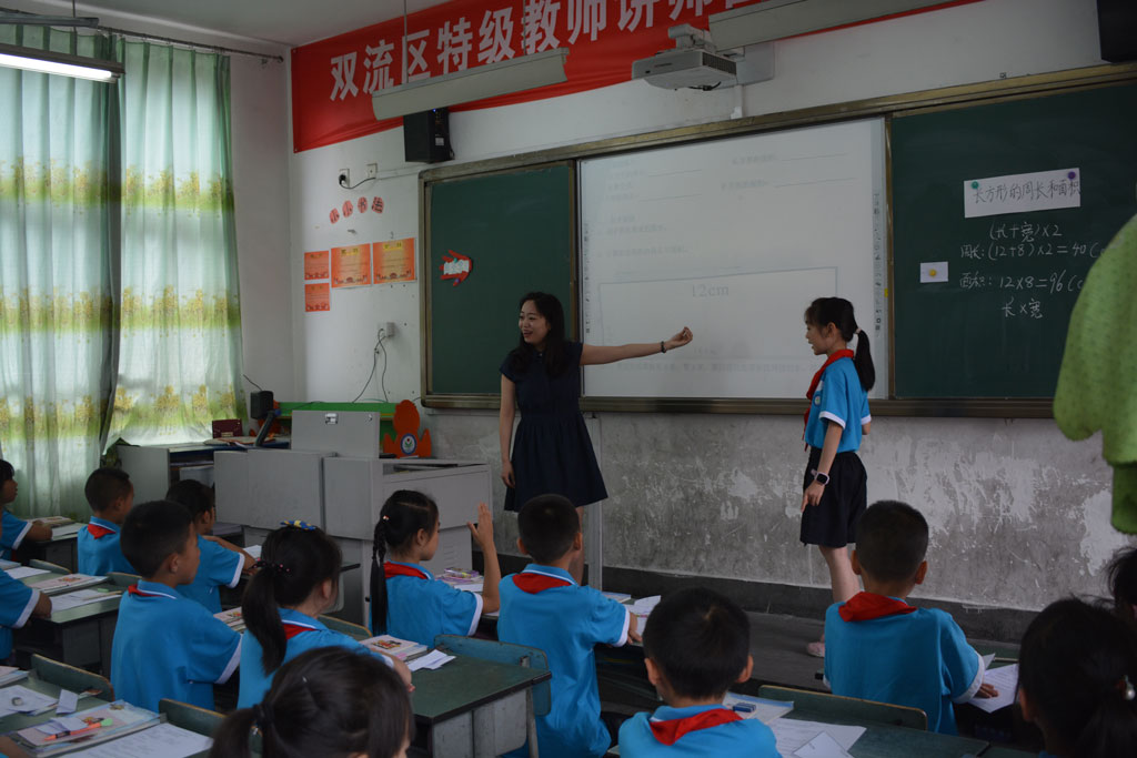 数学组由双流实小吴小兰老师为大家展示了《长方体的周长与面积》。她立足学生的实际情况,让学生通过摸、折、画、想的形式培养学生的空间观念,吴老师基于生活,设计富有生活情趣的有层次的练习,不仅激发了学生的学习积极性,也给听课的老师留下来深刻印象。