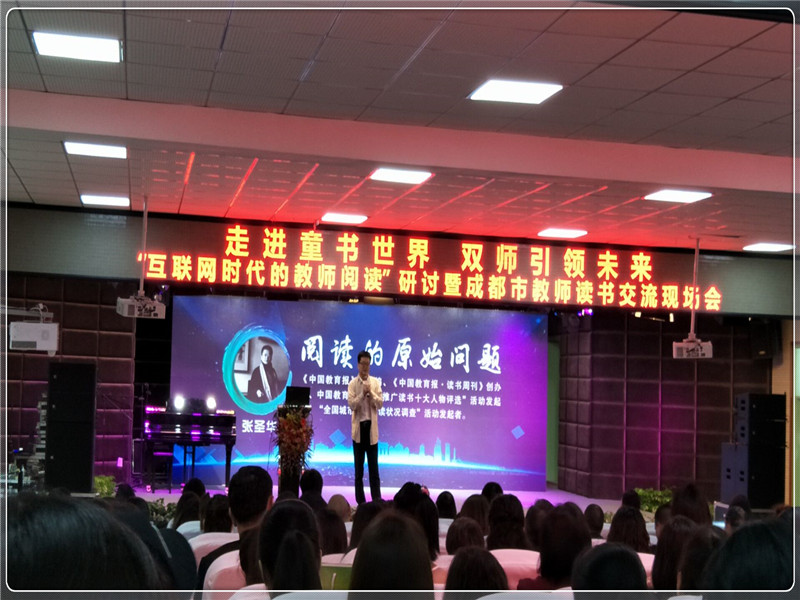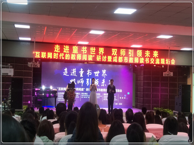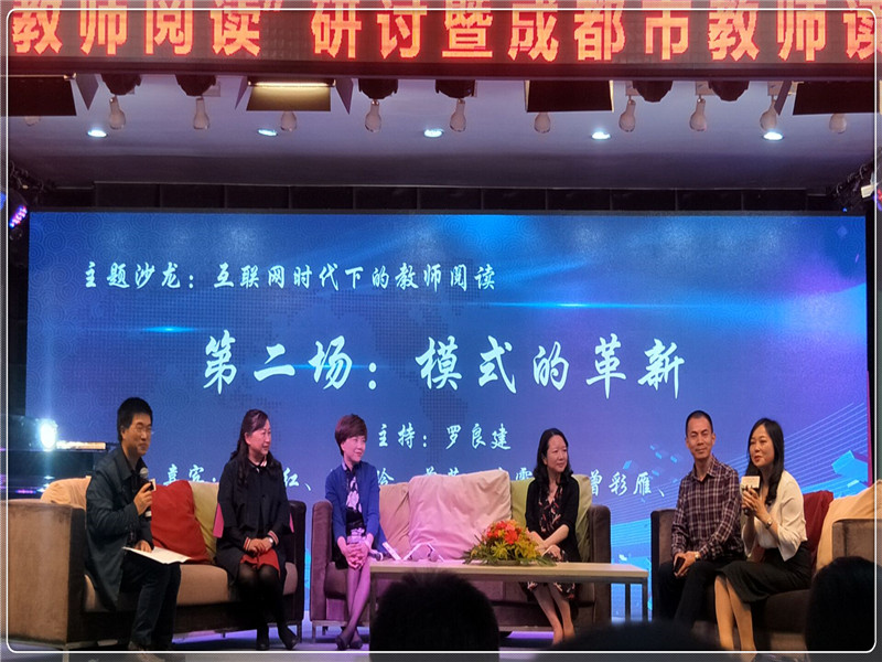 双师引领未来”为主题的“互联网时代下的教师阅读”研讨暨成都市教师读书交流现场会在龙泉驿区第五小学举行。现场会上,中国教育报副总编张圣华以《互联网时代的教师阅读》为题作主题演讲。四川大学哲学教授刘莘就《教师智慧阅读与学生思维促进》与在座领导及老师们进行分享。周晓玲校长作为此次活动的特邀嘉宾在会议的主题沙龙环节与大家进行交流。
