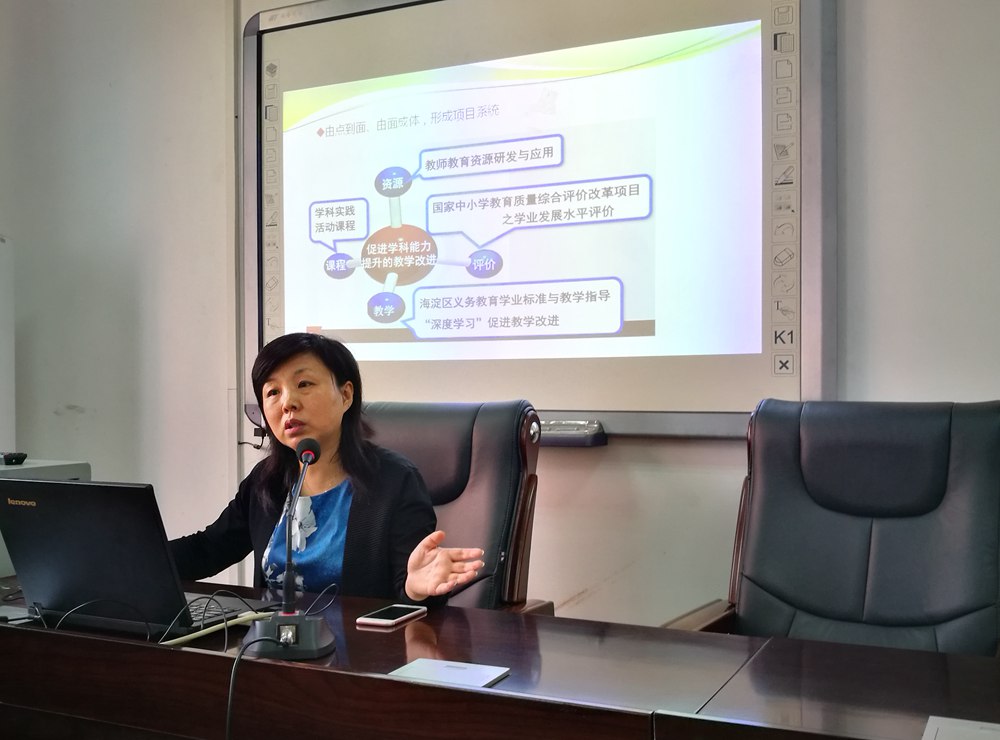 一是丰富职能定位,调整内设机构。姚校长介绍了北京市海淀区教师进修学校的职能和内设机构入手,重点介绍了跨学段大学科教研和跨学科的综合教研的工作方法。