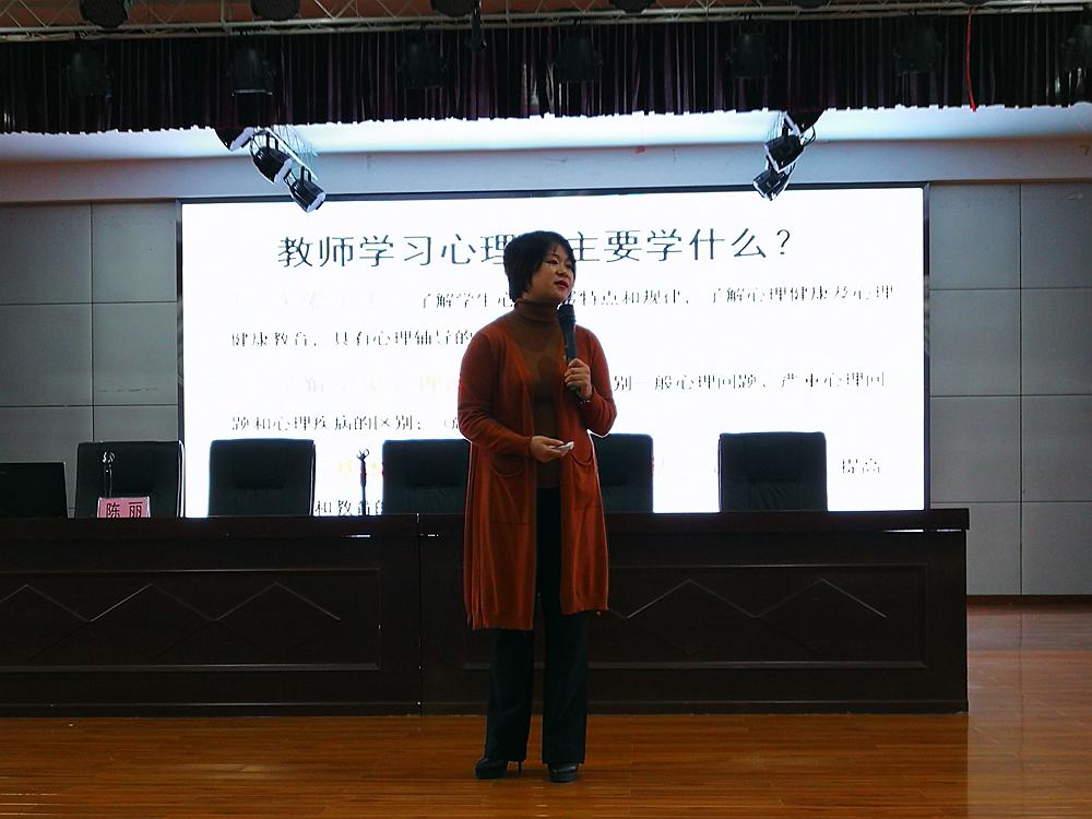 下午1点半,双流区学科带头人、区优秀青年教师、区研培中心研培员陈丽为大家带来了题为《从心出发——了解学生的心理特点》的生动讲座。陈丽老师从心理学的角度与新教师们对教师职业角色进行了交流。她一方面提出“教师是学生的重要他人”,并倡导新教师运用积极心理学的视角来看待学生,关注学生的成长。另一方面,陈老师也从了解学生心理发展的角度介绍了当下各学段学生的心理特点,并结合案例阐述了遇到具体问题所采取的相应沟通方法,教导新教师不论课堂内外,要用人文情怀关照学生的发展,注意学生心理变化,做学生的心灵引导者,希望新教师们将来不只做师者,还要做学者和思者。