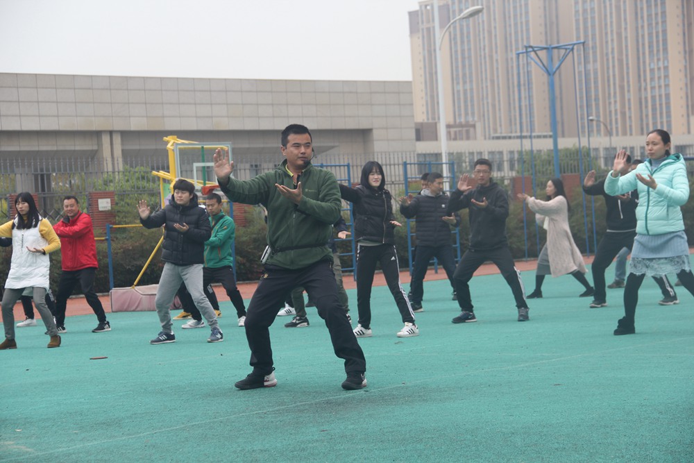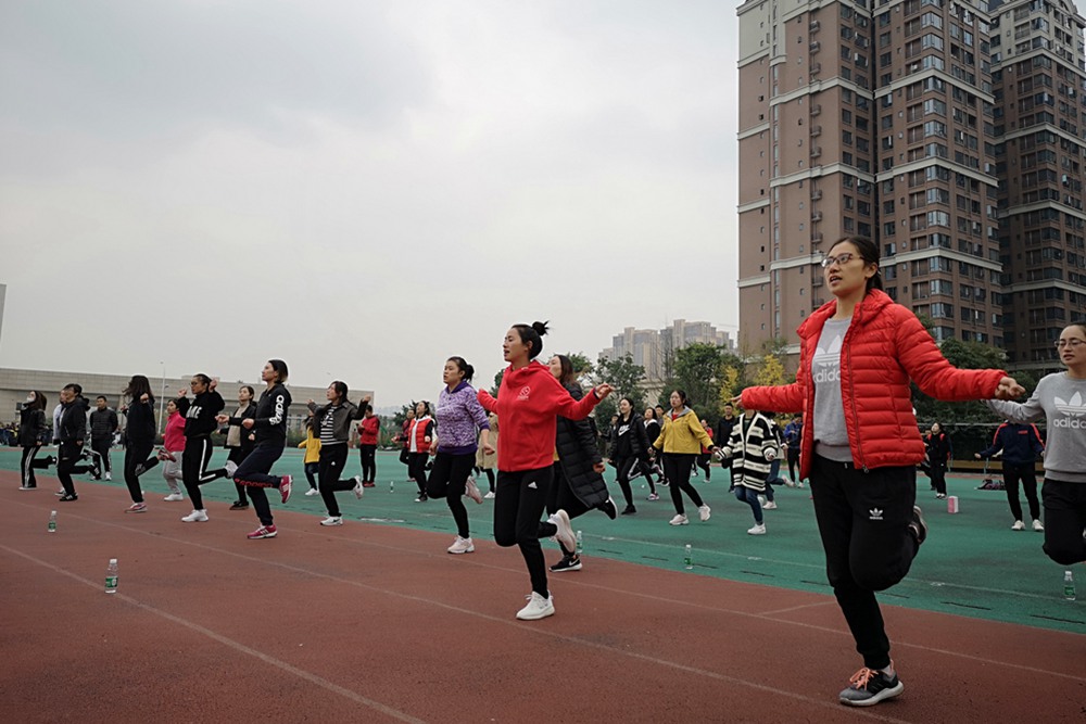 为了推广大课间活动,改变大课间传统模式,下午一点半由杨宇老师团队为大家带来武术操、绳操、球操。热情的球操、动感绳操、刚劲有力的武术操,灵动的变化,展现着校园阳光体育的魅力与活力。