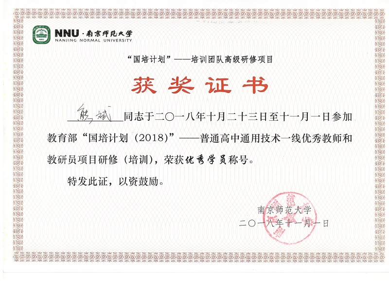 2018年10月22日——10月23日,“国培计划(2018)——通用技术一线优秀教师和教研员研修项目”在南京师范大学成功举办。来自全国50名通用技术一线教师和教研员齐聚古都金陵,在风景秀丽的南师校园共同接受教育部、财政部倾力主导的这一高端研修,聆听专家们高水平的学术讲座,与同行们交流切磋教育教学的宝贵经验,提升我们的专业素养和教育教学能力。