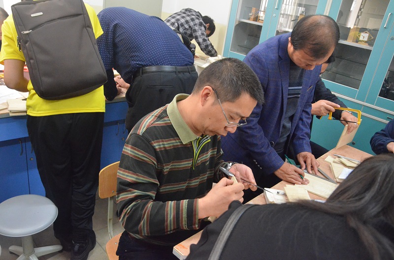 培训第二天安排了技术实践项目,南京第三高级中学曹国盛老师介绍了《木工制作的技术实践》,每位老师都领到了实践任务,大家都做得非常认真。