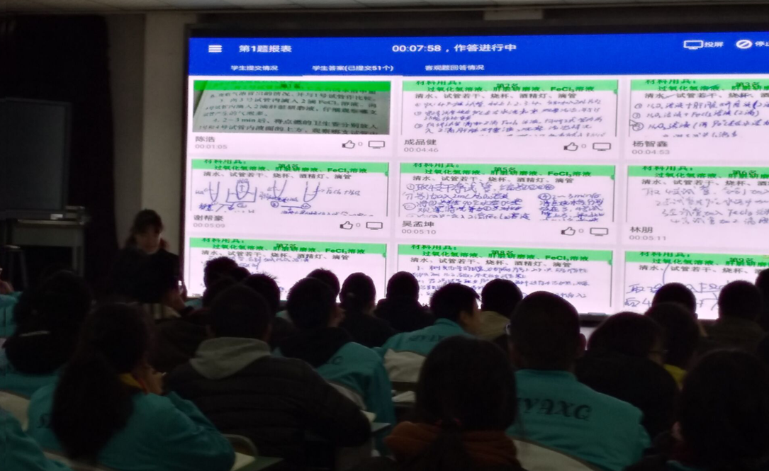 活动首先由双流永安中学高一生物教师吴艳组织高一(2)班学生献上的必修一第五章第一节《降低化学反应活化能的酶》的研讨课。课上,吴艳老师通过演示实验创设情境,让学生亲眼目睹了过氧化氢在不同条件下的反应情况,学生通过实验探究—实验原则分析—再设计实验的一系列过程,得出酶具有催化作用且同无机催化剂相比,催化效率更高的结论。课堂上调动学生积极参与,主动思考,课堂气氛和谐而活跃,帮助学生建构了相应的重要概念。