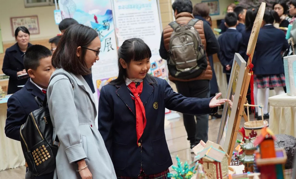 (一)与会来宾兴致盎然参观体验《蜀韵融合课程成果展》