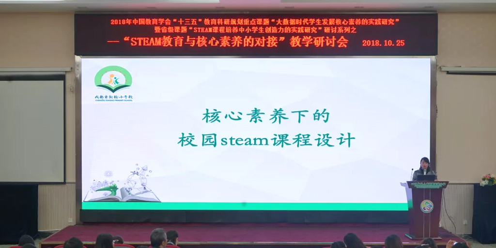2018年10月25日上午,由成都市教科院主办、双流区研培中心与圣菲小学共同承办的成都市“STEAM教育与核心素养的对接”主题研讨活动在圣菲小学隆重举行。成都市教育科学研究院院长罗清红,双流区教育研究与教师培训中心主任邱刚田,美国纽约州立大学奥本分校教育技术专业博士、电子科技大学高等教育研究所特聘研究员陈静萍,四川省特级教师、龙泉驿区教育科学研究院教育发展研究部部长李明隆等有关领导及专家出席会议;来自全市各区(市)县的科研骨干,信息技术、科学、语文、数学、美术等学科骨干教师以及来自沐川、乐山、峨眉等外地市的学校老师200余人全程参与了此次活动;此外,本次会议还开通了会议网络现场直播平台及中澳连线,让学习不局限于现场,让更多人通过网络直播受益。活动由成都市教科院信息资源数据中心副主任陕昌群主持。