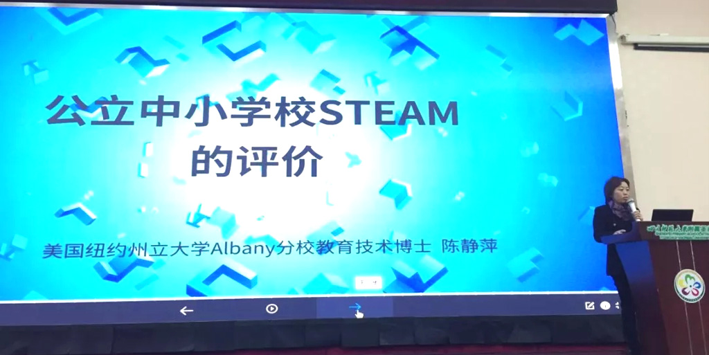 (十三)美国纽约州立大学奥本分校教育技术专业博士、电子科技大学高等教育研究所特聘研究员陈静萍作《公立中小学校STEAM的评价》主题分享