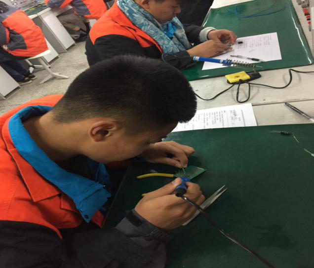 竞赛活动于上午8:30拉开序幕,首先各学校参赛选手由带队老师带领来到学校崇技楼307室进行赛前签到,随后,参赛选手们胸有成竹,有序地进入实训室,对号入座,做好赛前准备。上午9:00比赛正式开始,选手们个个摩拳擦掌、精神抖擞,比赛中他们沉着冷静,各展才华,大显身手,赛出了水平,展示了风采。评委老师全程观察,做好过程记录,历经三个小时全面的理论测试和实操(电子产品装配及调试)比赛,选手们按时提交了自己满意的作品。