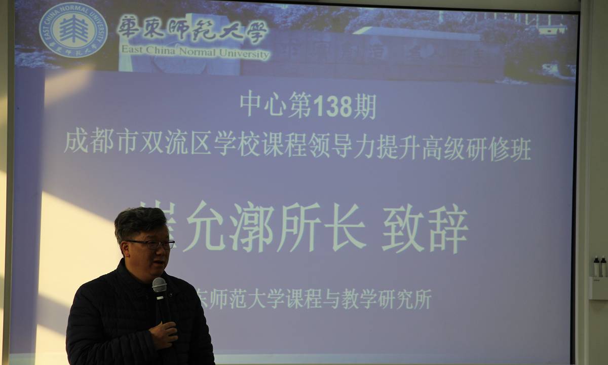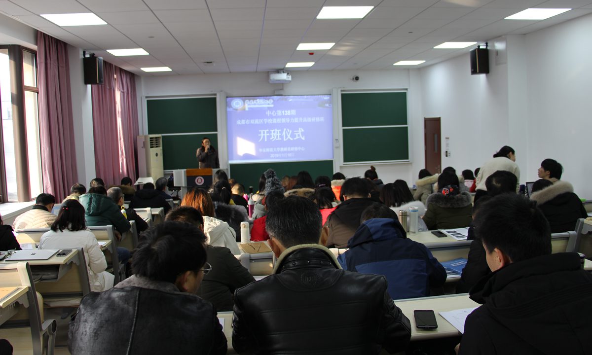 2019年1月16日上午,华东师范大学教研员研修中心第138期——成都市双流区学校课程领导力提升高级研修班开班仪式在华东师范大学文附楼513教室举行。华东师范大学课程与教学研究所所长、教授及博士生导师崔允漷,双流区研培中心副主任李久和出席。来自双流区研培中心小学各学科研培员、各小学副校长、教务处主任(副主任)共计55人参加此次开班仪式。