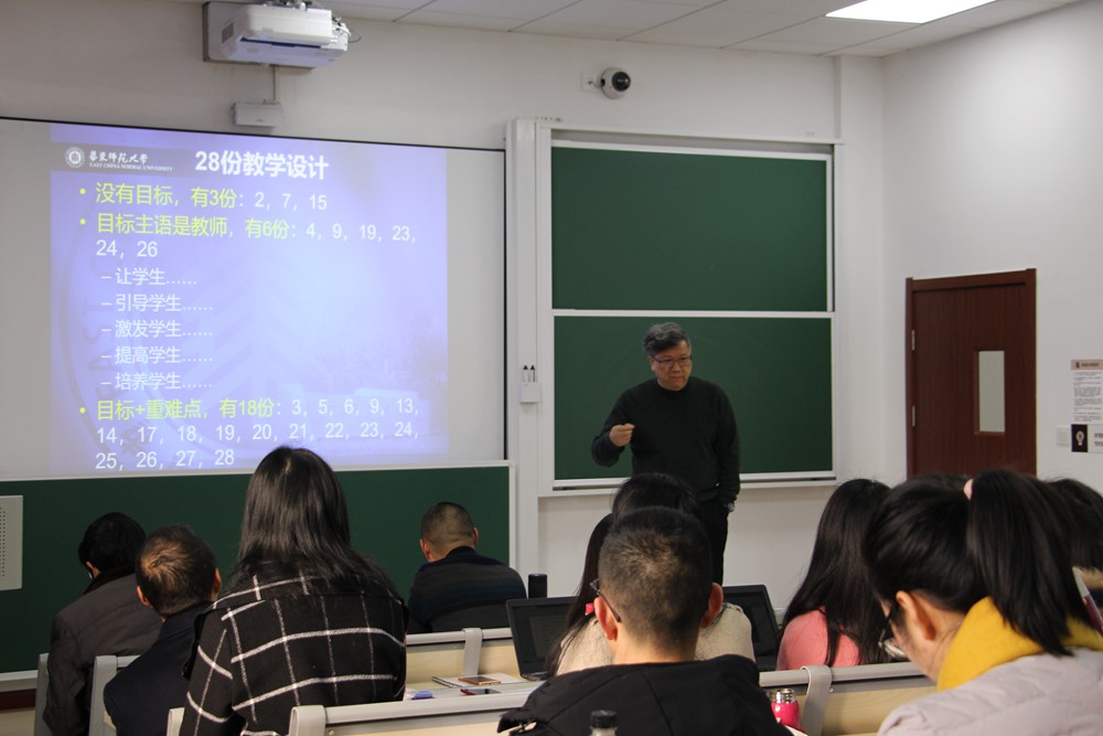 崔教授从当前教师缺乏专业性的视角切入,主要在以下两个方面作了重点讲解:一是指向学科核心素养的教学变革,提出教师应该建立完整的课程目标体系,指导学员们如何进行大单元备课、引领学生深度学习,如何变“教材内容”为“教学内容”,如何探索各学科典型学习方式以及实施教——学——评一致的教学。二是怎样编制学期/模块的《课程纲要》。他提出课程纲要必须回答目标、内容、实施与评价这四个问题,并借助案例为我们详细讲解了《课程纲要》的评议框架。崔教授的讲解深入浅出,既有系统理论,又有现实经验,让人受益匪浅。最后,学员们和教授积极互动,提出疑问,畅想打算。