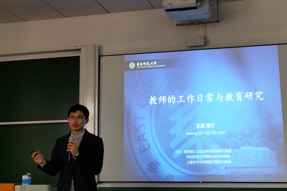 下午2时,研修班第四讲正式开始。来自华东师范大学教育部高峰计划博士后研究员王涛以《教师的工作日常与教育研究》为题,给大家做了实证研究实施过程的专业指导。(图6)王博士首先启发学员“提出问题”,带着问题的视角进入学习。接着,以这些问题为切口,结合自身研究实例,从质性研究的方法进行问题的结构化分类、数据的结构化分析等,多方面、多层次、清晰地呈现出质性研究报告的框架和内容。本堂讲座所传达的研究者视角独特,对于学员们看待和处理日常教学,提升理论水平,有很大的启示和指导意义。参研学员们也积极思考讨论,学术氛围浓厚,收获颇丰。
