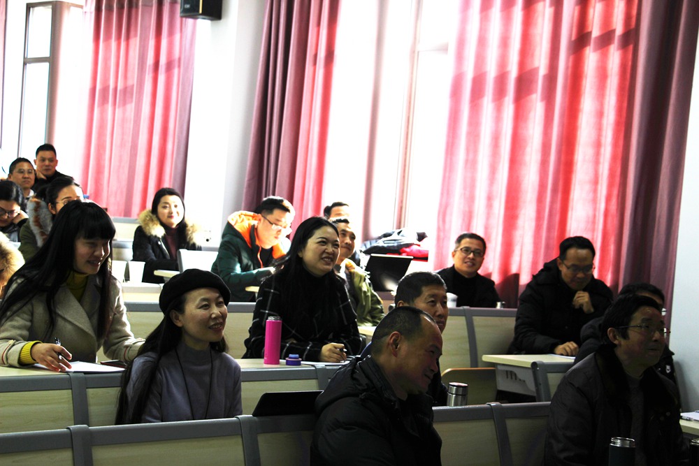 王教授带领大家从教育发展史出发,洞察目前绝大多数教师在面临教育变革与自身专业发展中的困扰与发展瓶颈,启发大家把教学置于专业发展的金字塔尖,提出发展性策略:第一,将“编、教、考”串联,用“学什么、学到什么水平”为目标导向,指导教学单位并将其连缀形成教学设计;第二,打通“研-教-述”脉络,把反思运用于教师学习与日常教学中,寻找教师专业发展的新途径;最后,王教授以反思性教学为例,引领教师从“对象的重建、结构的逻辑、积累的形成”三方面上升为课题研究,以提升教师的研究力。王教授的讲座幽默、睿智,妙语连珠,以贴近地面的理论飞行带领大家度过了一段酣畅淋漓的学习时光。