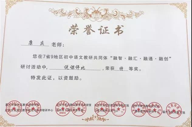 最终,康庆老师的说课获特等奖,汤斯嘉老师的展示课获一等奖,张飞艳老师的评课议课获一等奖。杨琴瑶老师的论文《现代诗歌当中人称代词也有“味”》及田安均老师的论文《诵读教学 大有作为——以余映潮<假如生活欺骗了你>课堂教学为例》,分别获得论文评选特等奖和一等奖。