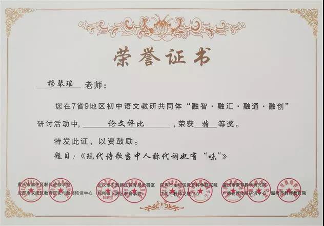 双流初中语文参赛队在七省九地区教研共同体诗歌教学研讨活动传喜讯