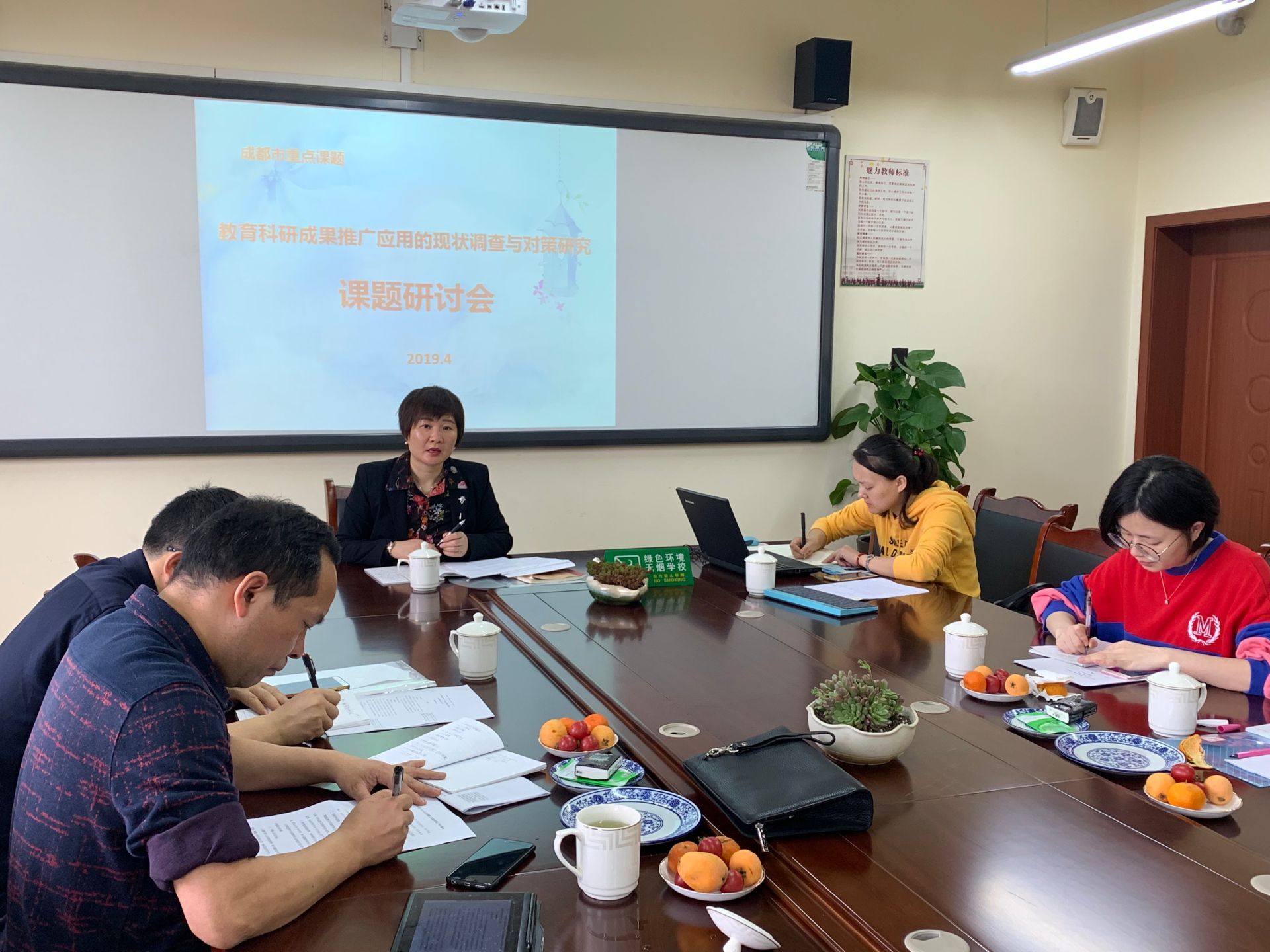 芳菲四月,春意抒怀。2019年4月10日上午,全体课题组成员在双流区研培中心理论室易恩主任的召集下,齐聚双流区实验小学会议室,召开了市级课题《教育科研成果推广应用的现状调查与对策研究》的课题研讨会。此课题是由双流区研培中心理论室主任易恩牵头申报的市级课题,课题研究成员主要是由双流区教育科研中心组成员,学科带头人,各学校教科室主任等组成。旨在通过本课题的研究,增强区域内教师的教育科研成果推广意识,强化学校对教育科研成果的转化与应用,从而促进区域教育科研的提升和发展。