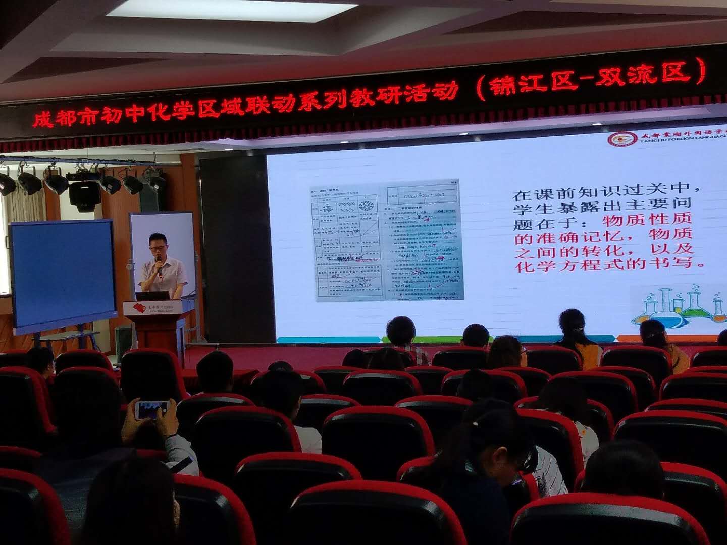 2019年4月9日,双流区和锦江区初中化学联合教研在成都七中汇源校区成功举行。双流区和锦江区的初中化学教师、成都市各区县骨干教师和青年教师参加了此次教研活动。本次教研活动共分为三个部分,《生活中常见的盐》的同课异构,双流区初中化学课标考纲学情解读大赛成果汇报以及课堂点评。