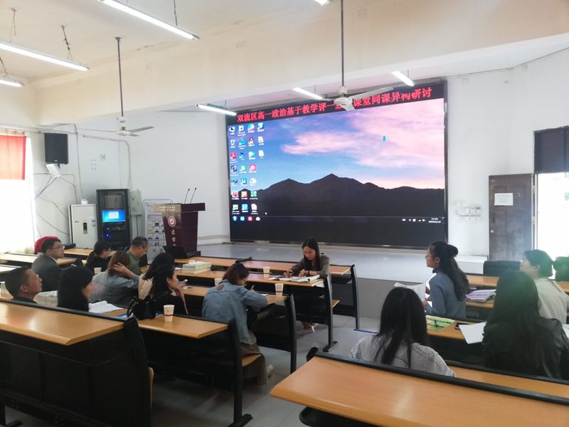 2019年5月10日,双流高中政治基于教学评一致的政治课堂同课异构研讨活动在永安中学举行,双流区政治教研员杜梅老师、双流区全体高一政治教师参与了此次活动。