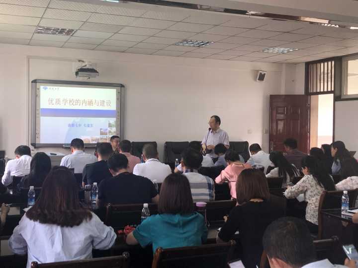 培训中,毛校长以优质学校的内在品位、优质学校的达成路径、优质学校的校长作为等三大板块向参会的学员介绍了怎样去衡量和建设一所优质学校。例如,他认为一所优质学校的内在品位应该是“六有”。即有灵魂、有人味、有追求、有定力、有大师、有生趣。在讲到一所优质学校的灵魂时,他以抗战时期的西南联大为例,向大家详细剖析了清华、北大、南开三所大学所具备的不同的特点及其历史成因。毛校长还讲到,要建设一所优质学校,要以文化为灵魂、以课程为载体、以教师为依靠、以管理为保障、以变革为动力、以设备为支撑,重点在于教师队伍的建设和课程的开发。而一所优质学校的校长应该首先是好老师,应该是“学校的校长”,应该是教师的“开发商”、是课程的开发员、是管理的推进者。