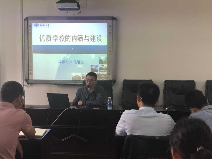 5月15日下午,双流区校级干部培训班第五次集中专题培训活动在区研培中心四楼会议室举行,双流区研培中心副主任赵剑云主持培训。本次培训邀请的专家是成都七中副校长、成都七中实验学校校长、成都市名校长工作室领衔人毛道生老师,培训主题为《优质学校的内涵与建设》。