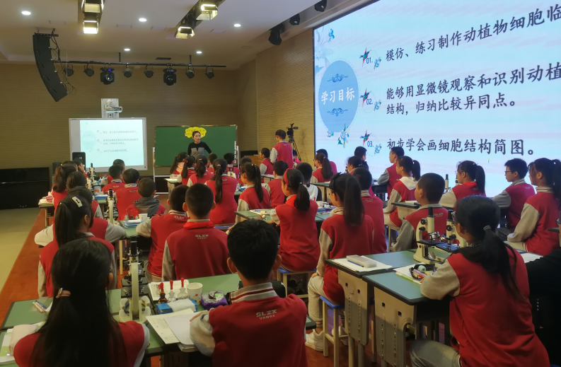 2019年10月15日双流区初中生物学教研活动在双流中学万科第五城学校学术厅举行,成都棠湖外国语学校文红梅老师与双流中学万科第五城学校王聪老师围绕着“基于课标下的大概念教学,体现教、学、评一致性的大单元教学设计理念”共同展示了连堂课。