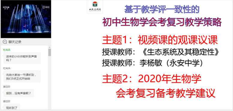 2020年4月28日上午,我们通过双流区教师培训智能云平台迎来了双流区初中生物学八年级研培活动,全区初中生物学教师参与了此次疫情期间的线上教研活动。本次研培活动安排了两个主题:主题1观课议课--永安中学李杨敏老师的视频课;主题2是双流区生物学研培员杜尚兵老师对2020年生物学会考复习备考提出了教学建议。