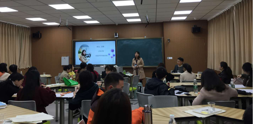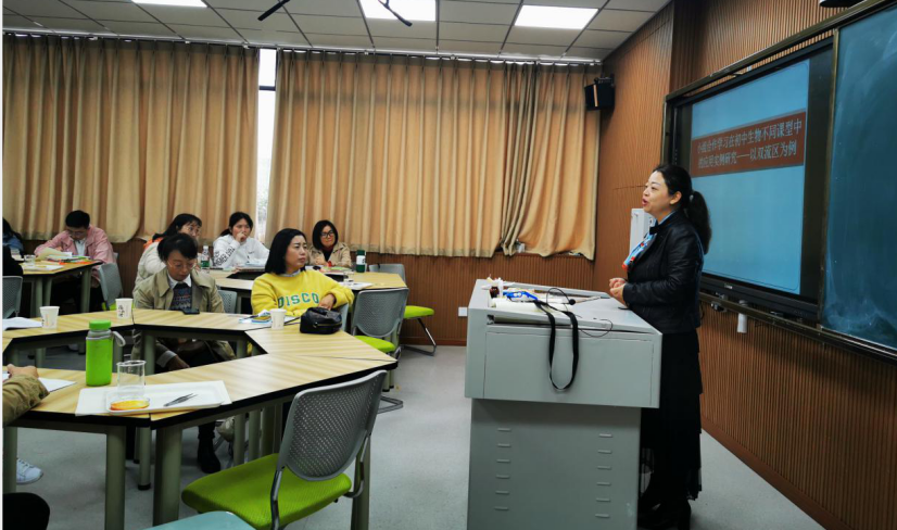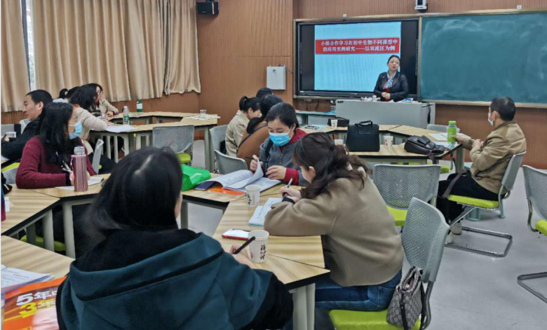 首先,来自棠湖中学的周映老师带来了题为“初中生物不同课型的小组合作学习开展”的专题讲座。周老师就初中生物小组合作学习开展的现状和意义、实施策略和途径、适应课型进行了充分地论证,并以具体实例展示了小组合作学习的成效。小组学习是一种以学习共同体为中心的学习策略,能培养学生的合作精神,提高问题解决和达成的效率,为教学评一致性的落实提供了理论支撑。