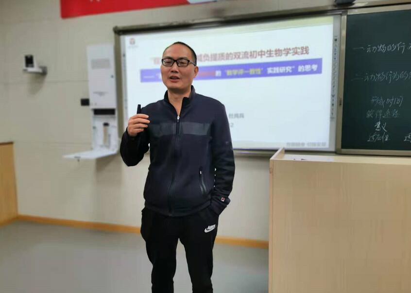 最后,区教科院初中室副主任杜尚兵就“双减”形式下,减负提质的双流初中生物学实践做了专题讲座。杜老师谈到,一堂优秀和精彩的展示课,一定是精心设计准备出来的,我们设计和准备的过程也是最重要的。学习目标叙写必须以课程标准的分解和学情分析为基础;教学设计时应该体现以学生为本,要深入思考学生学什么,学到什么程度,而不只是思考老师教什么,教到什么程度;教学设计时就要思考基于学习目标的评价任务(作业)设计,而且要与学习目标相匹配。在展示分析了一份《人体内废物的排出》的教学评一致性的教学设计后,杜老师还建议双流区的所有生物学教师要坚持对课程标准的研究解读,对教师用书的阅读研究和教材的重视。尝试用课程纲要替代学期教学计划;并在备课时注意大概念(大单元、大任务)学历案和课时学历案的精心设计;还要加强“教学评一致性”课堂教学实施和评价研究落实。